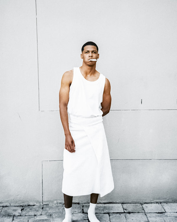 IT IS THROUGH THIS CONTRADISTINCTION, THAT FOR SPRING SUMMER 2024 I ENDEAVOURED TO SUBVERT FASHIONS’ UTILITY TO INSCRIBE RIGIDLY DEFINED SOCIAL NORMS.